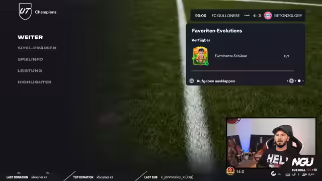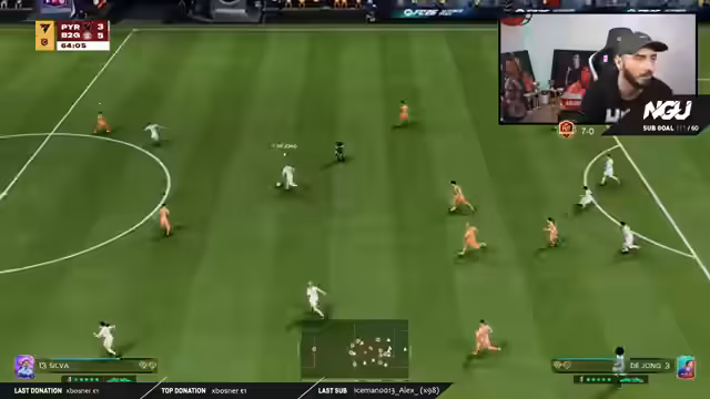 03:45:25Der Streamer startet motiviert in die letzte Partie mit dem Ziel, ein perfektes 15:0 zu erreichen. Trotz starker individueller Leistung und erspielter Chancen bleibt der Torerfolg aus. Er kommt nicht in den Rhythmus, was er auf eine extrem schlechte Serververbindung zurückführt. Trotzdem kämpft er sich zu einer soliden 14:0-Führung, doch das Spiel wird von enormem Frust und technischen Problemen überschattet, die ihn komplett aus dem Konzept bringen.