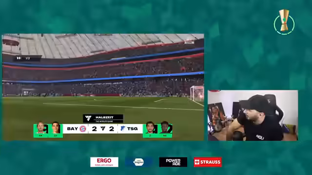 01:44:16Nach dem Drama im Viertelfinale stehen die Halbfinalpartien fest: FC Germania trifft auf TSV Havelse, und Hoffenheim spielt gegen den FC St. Pauli. Germania hat sich in einem hart umkämpften Golden-Goal-Duell durchgesetzt, während Hoffenheim sich nach einer souveränen Führung qualifiziert hat. Der Fokus verlagert sich nun auf diese entscheidenden Matches, wobei der Streamer versucht, alle Partien gleichzeitig zu verfolgen, was sich aufgrund der technischen Herausforderungen als schwierig erweist. Die Bedeutung der Sponsoren Ergo, Wagner, Strauß und Powerade wird erneut hervorgehoben. Die Atmosphäre und die Energie des Events werden gelobt, und die Vorfreude auf die Halbfinalbegegnungen ist groß, da die Teams um den Einzug ins Finale kämpfen.