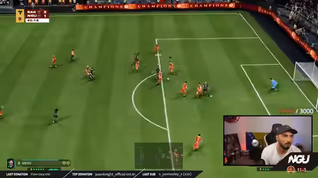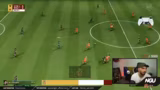 01:29:40Der Streamer kritisiert den Gegner, der nur Anstoßtore schießt und sonst wenig zum Spiel beiträgt. Dabei wird erklärt, dass Anstoßtor nur möglich ist, weil der Gegner mehr Raum lässt und die Spieler weiter vom Tor stehen. Der Streamer zeigt, wie er das in Zukunft besser verteidigen kann und dass die Raumausnutzung entscheidend ist.
