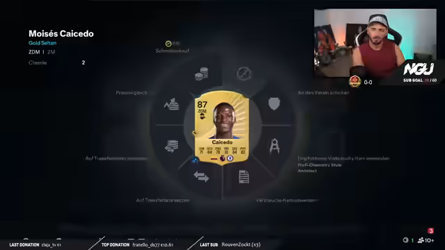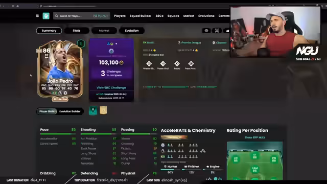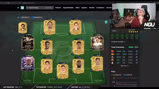 05:03:42Der Streamer analysiert das Aufbauteam des Chat-Users, das hauptsächlich auf unverkaufbare Spieler setzt und auf Rafinha spart. Er bestätigt die Stärke der Mittelfeldreihe mit Baldé, Konate, Araujo, Frimpong, Neves, Caicedo und Wirz und zeigt sich von der offensiven Besetzung mit Lamin, Gakpo und Joao Pedro beeindruckt. Die Chemie wird als unbedeutend für den Moment betrachtet, da das primäre Ziel das Sammeln von Coins ist.