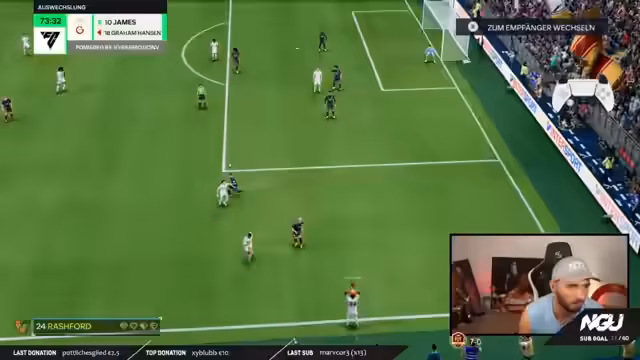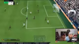 00:36:58Nach technischen Vorbereitungen und Abschiedsgrüßen geht der Streamer ins erste Weekend-League-Spiel. Er stellt das Team mit Thüram auf ZDM-Position vor. Trotz anfänglicher Schwierigkeiten findet das Team ins Spiel und nutzt die Stärken von Lamin Jamal, der als 'Trivela-König' bezeichnet wird. Nach dem Führungstor zeigt der Gegner aufmunterndes Verhalten, was der Streamer als 'Momentum' identifiziert.