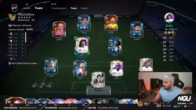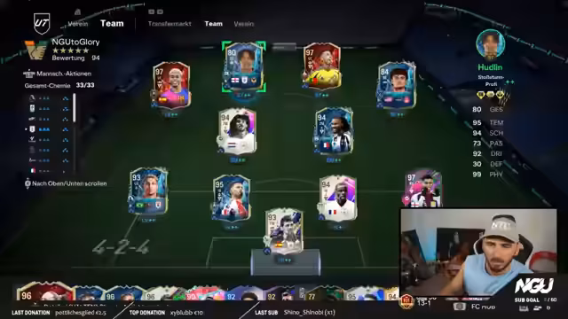 Es wurde ein intensiver Grind im FUT-Champions-Modus absolviert. Ein Team um Cristiano Ronaldo und Lamin Jamal wurde getestet und gegen Top-Gegner eingesetzt. Trotz hoher Siege und seltener Niederlagen wurde das Team als sehr potent eingestuft. Zukünftige Verstärkungen wie Mbappé wurden angedacht. Höhepunkt war das Öffnen von Player Packs, bei denen Spieler wie Dembélé gezogen wurden.