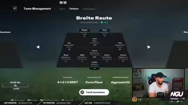 01:51:35Der Stream beginnt mit der Analyse der aktuellen Teamformation und spielerischen Leistungen. Die breite Raute wird als bevorzugte Formation etabliert, die offensiv viel Freude bereitet. Der Streamer bewertet Spieler wie Touré, Konate und Best sehr positiv, besonders deren Passspiel und offensive Einbindung. Es wird ein starkes 4-1 nach fünf Spielen festgehalten und das Ziel, den Spaß am Spiel wiederzufinden, wird als erreicht betrachtet. Die positiven Reaktionen des Publikums auf das aktuelle Spielstil werden ebenfalls erwähnt.