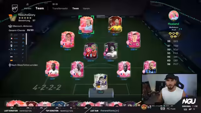01:35:45Der Streamer interaktiv mit seiner Community, indem er sie fragt, ob sie an ein Comeback geglaubt haben. Er preist die enge Raute als siegreiche Taktik und bekräftigt seine Philosophie, nie den Glauben an einen Sieg zu verlieren. Im Team-Vergleich wird Dzeko als der performanteste Spieler der neuen Truppe identifiziert, während Spieler wie Griezmann und Haaland bisher nicht überzeugen konnten. Er erklärt, dass der Einsatz von Herzensspielern die Leistung des gesamten Teams positiv beeinflusst.