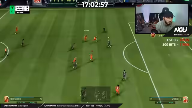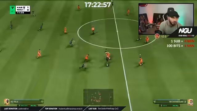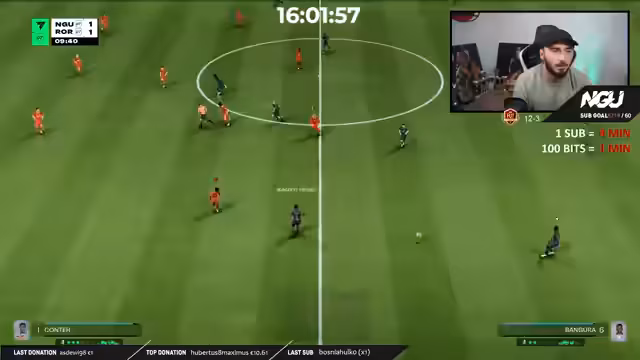 04:00:10Das Spiel gegen einen neuen, schnellen Gegner beginnt. Der Streamer setzt 'Sir Lord Conte' ein, der sich als überaus effektiv erweist und durch sein R1-Dribbling problemlos an der Abwehr vorbeizieht. Er feiert den Spieler und lobt ihn als 'Wahnsinn'. Obwohl es aktuell noch keine passende Evo für ihn gibt, ist der Streamer überzeugt von Conte's Stärke und bittet die Community, sich diesen Spieler für zukünftige Evos zu merken, da er zu einem Monster werden könnte.
