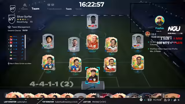 Es wurde der 42. Tag des NGU Subathons dokumentiert. Im Mittelpunkt stand die intensive Analyse der Silberliga-Teams, wobei neue Spieler wie Sir Lord Conté als Schlüssel zur Siegesserie identifiziert wurden. Parallel dazu wurde der sechswöchige Grind-Plan für den Account vorgestellt. Der Stream endete mit dem Übergang zu Team of the Year, nachdem der Silbercup erfolgreich abgeschlossen wurde.