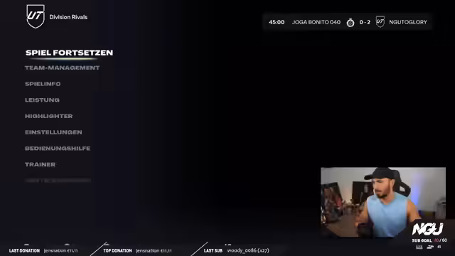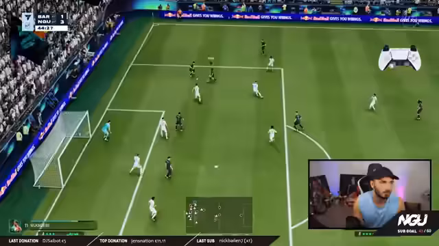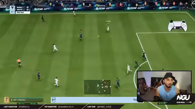 00:43:11Nach einigen technischen Anpassungen und der Feier von YouTube-Meilensteinen werden die ersten Spiele des Tages gestartet. Der Streamer wendet die gelernten Defensivregeln konsequent an und demonstriert den Rücklauf des Mittelfelds nach Ballverlust. Die Kompaktheit in der Defensive führt zu weniger Gegentoren. Allerdings wird auch die Fehleranfälligkeit und die Schwierigkeit bei der korrekten Bedienung neuer Tricks wie dem L1-R2-Boost erwähnt, was aber als Übungsfeld gesehen wird.