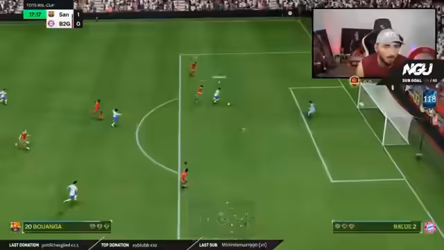 00:00:01Der Stream beginnt mit technischen Verbindungsproblemen zwischen OBS, YouTube und Twitch, was zu kurzen Hängern führt. Der Streamer vermutet ein Problem mit dem neuen Router oder OBS selbst und will die Ursache untersuchen. Trotzdem startet er ins Spiel und testet sein neu gezogenes Team, darunter Cristiano Ronaldo, in einem Rivals-Match. Er beschreibt den Spielverlauf, kritisiert seine eigene Verteidigung und zeigt sich frustriert über das Spielverhalten des Gegners, das er als zu offensichtlich und nicht dynamisch empfindet.