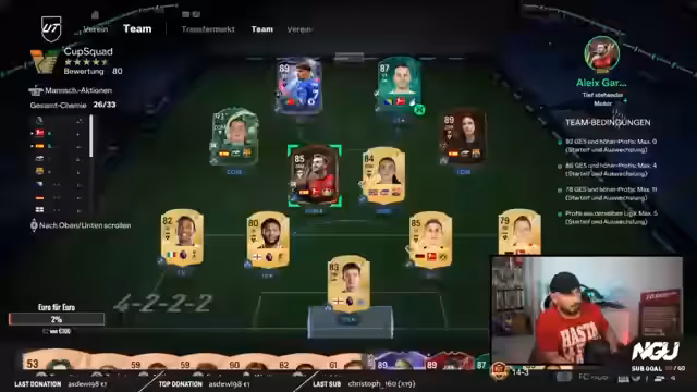 01:43:05Nach dem letzten verlorenen Spiel ist es wichtig, wieder in die Spur zu kommen. Es wird sich heute nicht ausgehen, alle Games zu machen. Es muss geschaut werden, dass der Cup fertig gemacht wird, da dieser in 20 Stunden fertig ist und man ein Playstyle Plus bekommt. Es wird der Incisive Pass benötigt, welcher dann auf Hudlin kommen soll. Das muss richtig gemacht werden. Es werden die Cup Games gemischt, ein Teil wird offline gemacht, ein Teil online. Die Wikileaks sollen diese Woche durchgebracht werden. Es wird gefragt, wie viele Cup Games bisher gewonnen wurden. Es wird im Mix gemacht, ein Teil offline, ein Teil online. Der Streamer ist gebürtig aus Bosnien, in Tuzla geboren und lebt in Österreich.