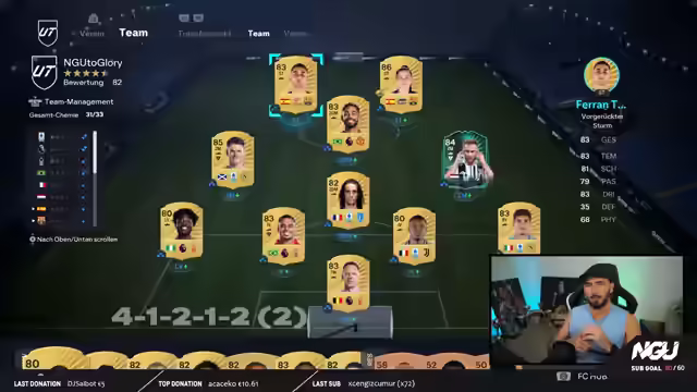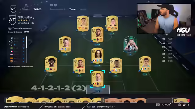 00:07:57Der Streamer startet einen neuen Stream und den ersten NGU2Glory Livestream in FC 26. Es wird eine "verschwitzte Reise", da FC26 eine hohe Torfrequenz hat. Es wird eine Road to Glory (RTG), bei der kein Cent in Packs investiert wird und keine FIFA Points verwendet werden, um Spieler zu kaufen. Stattdessen werden Spieler durch Grinden, Craften, Traden und "sweaten" erworben. Der Streamer betont, dass RTG ein anderes Feeling als Pay2Win ist, da alles von Anfang an selbst aufgebaut wird. Jeder Spieler, der gekauft wird, ist vorher ergrindet worden. Er hat seit vielen Jahren zwei Accounts, einen Main-Account und einen RTG-Account, und weiß, dass RTG emotionaler ist. Jeder gezogene oder gekaufte Spieler ist etwas Besonderes, da er durch den Grind verdient wurde. Er freut sich, dass die Zuschauer bei der ersten Reise dabei sind und begrüßt alle Zuschauer auf Twitch und YouTube. Er bittet die Zuschauer auf YouTube, ein Like dazulassen, um den Algorithmus zu pushen, und die Zuschauer auf Twitch, kurz auf YouTube vorbeizuschauen, zu liken und zurückzukommen. Er bedankt sich für die Follows und Resubs und kündigt an, dass das erste große Ziel für die RTG sein wird, Pina und Dzeko vorne spielen zu lassen. Er lobt Pina als die krasseste Goldkarte im Spiel und betont ihr gutes Preis-Leistungs-Verhältnis. Er erwähnt, dass er ein Defensiv-Tutorial abgedreht hat, das er nach dem Stream fertig schneiden wird und das bestenfalls morgen online kommt. Er ist gespannt auf die Resonanz und glaubt, dass es vielen helfen wird, da es leicht umzusetzen ist.