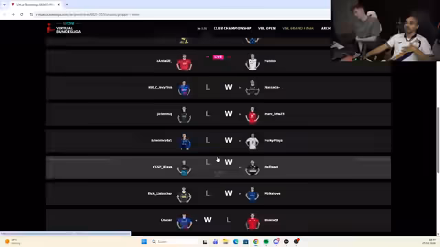 00:00:01Das Grand Final der VBL beginnt mit 32 Spielern, die sich über die Club Championship und die VBL Open qualifiziert haben. Diese sind in zwei Gruppen à 16 Spielern aufgeteilt. Gruppe 1 startet heute und spielt im Swiss-Format über vier Runden, wobei man drei Siege für den Einzug in die Top 16 benötigt. Der Streamer gibt einen Überblick über die anstehenden Top-Spiele wie Nasada gegen Levy Finn und Foki gegen Hermin Brato und nennt einige Favoriten für das Turnier.