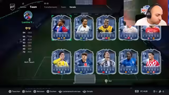 00:07:31Nach technischen Problemen startet der Streamer mit einer Pack-Öffnung. Er zieht Shaw, den er sofort testen will, und plant, ein Icon Pack zu öffnen. Sein Verein ist voll, daher beschäftigt er sich mit der Anzeige der Evolution-Karten (Evo) und der Spieler aus der Future Star-Promo. Er kritisiert Hendrik Lamin, Jamal Beinoun, und Beines Gittens, die er für schwach hält. Im Gegensatz dazu lobt er Kenan Yildiz und Adama Traoré. Er testet verschiedene SBCs und sucht nach Spielern mit benötigten Playstyles wie Finesse-Schuss oder Tiki-Taka für zukünftige Teams.