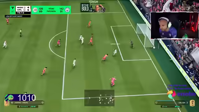 04:12:52Der Streamer spricht mit einer Person über seine aktuellen Probleme im Spiel und eine Pechsträhne von sechs verlorenen Spielen aus sieben. Er diskutiert Pläne für den Tag, einschließlich Essen und Sport. Es wird über die Chemie im Spiel gesprochen und welche Art von Chemie am meisten benötigt wird. Der Streamer kauft einen neuen Spieler und möchte diesen sofort testen. Er kommentiert die Häufigkeit, mit der er den Namen 'Salma' hört und fragt sich, wer das ist. Es wird über Regensburger eSportler und Chipper-Pässe gesprochen. Der Streamer fühlt sich als verpackter 4-2-1-3 Spieler und muss sich anpassen. Er beschreibt die 4-2-1-3 Formation mit Bonmatti in der Mitte und die defensive Stärke dieser Formation. Der Streamer stellt fest, dass sich etwas am Spiel geändert hat und sieht den Beweis dafür im Ergebnis. Er kommentiert, dass der Gegner mit dem Spiel in die dunkle Seite gewechselt ist und auf Wirz im Sturm setzt. Der Streamer erklärt, dass er Wirz im Sturm spielt, weil dessen Pässe sehr präzise sind. Er kritisiert das Spiel dafür, dass es im Pro-Leader keinen Bonus für drei Siege in Folge gibt. Der Streamer lobt seine Pässe mit Wirtz und bezeichnet sich selbst als 'verpackten' Spieler. Er stellt fest, dass der Gegner mehr Ballgewinne hat als er und er über links mit Mbappé spielen muss. Abschließend wird über die CPU und deren Stellungsspiel gesprochen.