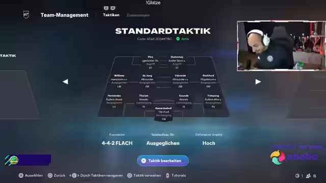00:41:34Der Streamer erklärt seine finanzielle Strategie, indem er sein Team verkauft hat, um 2 Millionen Coins zu sparen. Er rät dazu, das Team im November und Dezember zu verkaufen, da er sowieso drei Wochen lang kein Turnier hat und selbst beim Neukauf Geld spart. Er kritisiert die Dominanz der 4-5-1-Formation bei seinen Gegnern und bemerkt, dass viele Spieler durch das Nicht-Verkaufen ihrer Teams nach Cups erhebliche Verluste erleiden. Er äußert sich zur NBA-Saison und dem vorhersehbaren Skillgap zwischen den Teams. Er beklagt sich über sein Torwartverhalten und die schlechte Passqualität im Spiel. Er bevorzugt die 4-2-2-2-Formation als „Freestyle-Formation“, da sie mehr Kreativität im Angriff ermöglicht. Er ist frustriert über die wiederholten Tore seiner Gegner aus spitzen Winkeln und überlegt, Nick Pope ins Tor zu stellen. Er betont, dass sein aktuelles Team hauptsächlich aus untradebaren Spielern besteht und er keine besseren Optionen hat.