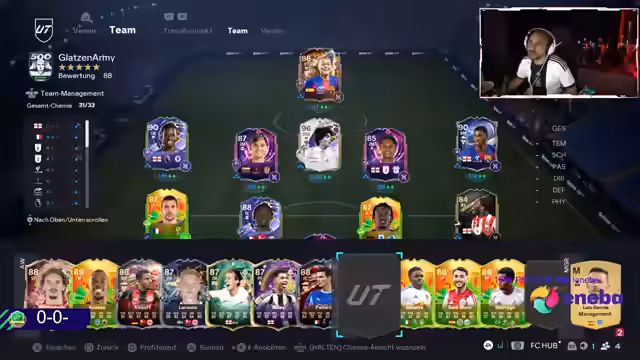 00:03:45Das Live-Stream-Special zum 1000 € VFB CUP startet. Streamer und Teilnehmer beraten über die bevorstehenden Spiele und diskutieren die Aufstellung ihrer Teams. Eine wichtige Entscheidung ist die Bildung von Teams, die idealerweise aus einem erfahrenen Pro-Spieler und einem weniger geübten Mate bestehen. Die Teilnehmer suchen gezielt nach einem fairen Gegner, um das Turnier balanced zu gestalten. Ein weiteres Thema sind die Team-Formationen wie 451, die offensiv ausgerichtet sind und spezifische Spieler wie einen goldener Abfang erfordern. Die Teilnehmer diskutieren auch über Spielstile und haben teilweise Bedenken, ob die Einsätze der Mates fair sind.