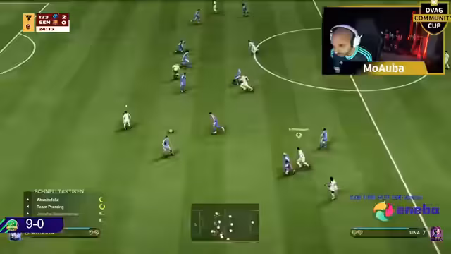00:33:25Nach einem schnellen Tor und guter Ballkontrolle baut der Streamer den Vorsprung auf 9:0 aus. Er spricht über den hohen Sieg und überlegt, ob der Gegner quitten wird, was er jedoch nicht für wahrscheinlich hält. Das Spiel verläuft für ihn einigermaßen komfortabel. Er erwähnt, dass er nach dem Spiel weitere Giveaways veranstalten wird, um die Community zu engagieren. Nach dem Spiel gelingt es ihm, mit einem Trick ein Tor nach einem Abseits-Fehler des Gegners zu erzielen, was ihm viel Freude bereitet.