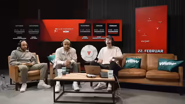 00:08:54Der Stream beginnt als Live-Bericht vom fünften Showdown der VW Club Challenge Chipball in Düsseldorf. Der Moderator begrüßt die Zuschauer und betont, dass es sich um einen entscheidenden Spieltag handelt, an dem sich Teams verabschieden und die Plätze für die Top 8 und das Finale in Stuttgart klären. Es wird eine Rückblick auf die bisherigen vier unterschiedlichen Showdown-Sieger gegeben und der Modus des CC-Finales erläutert, bei dem es um das Seeding für die Playoffs geht. Die Stimmung ist geprägt von Spannung und der Vorfreude auf die anstehenden Partien.