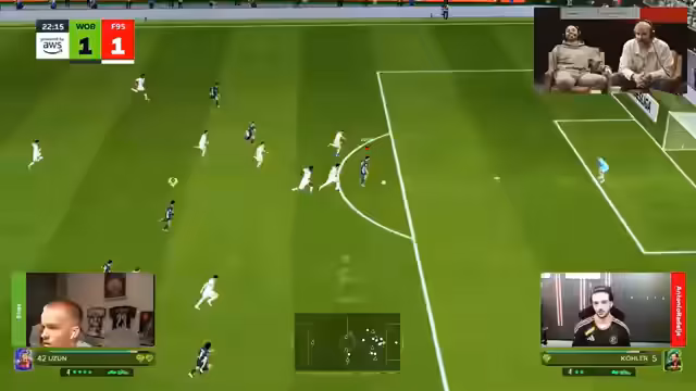 02:55:26Der Stream leitet in den letzten Spieltag der VBL Showdown-Runde ein. Der Fokus liegt auf dem entscheidenden Spiel zwischen Wolfsburg und Fortuna Düsseldorf. Beide Teams müssen punkten, um die Playoffs zu erreichen. Die Aufstellung mit Antonio Radeja für Wolfsburg gegen Elias wird vorgestellt und ihre Statiken werden analysiert. Ein Gewinnspiel anlässlich eines möglichen Faustschlags von Radeja wird gestartet. Das Spiel beginnt mit hohem Tempo, Wolfsburg geht früh in Führung. Elias hat eine große Chance zum Ausgleich, trifft aber nur die Latte, was die Magie und das Pech des eSport-Spiels zeigt.