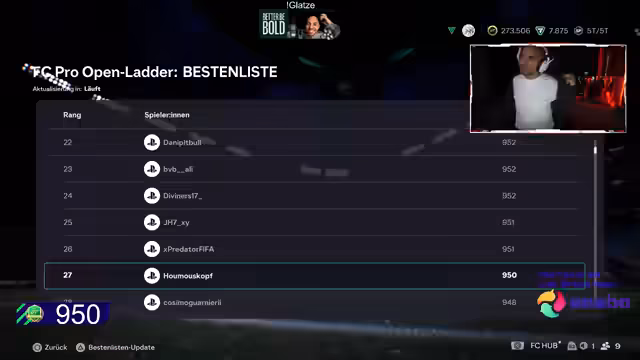 03:54:08Der Streamer betont, dass er trotz frustrierender Spiele nicht an seiner Taktik rütteln wird, solange er 85% der Spiele gegen Pro-Spieler gewinnt. Er ist äußerst unzufrieden damit, dass er nach einer Führung immer noch 'Kickoffs' kassiert und nicht für seine eigenen Tore feiern kann. Nach einem Sieg gegen Dennis Müller ist er in der Top 24 und beendet den Stream mit einem letzten Entscheidungsspiel, um in die Top 15 aufzusteigen. Er empfiehlt den Einsatz von weiblichen Spielern im Angriff, da diese sehr beweglich sind.
