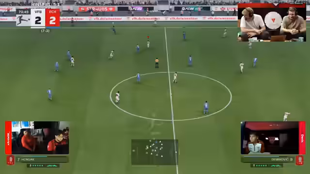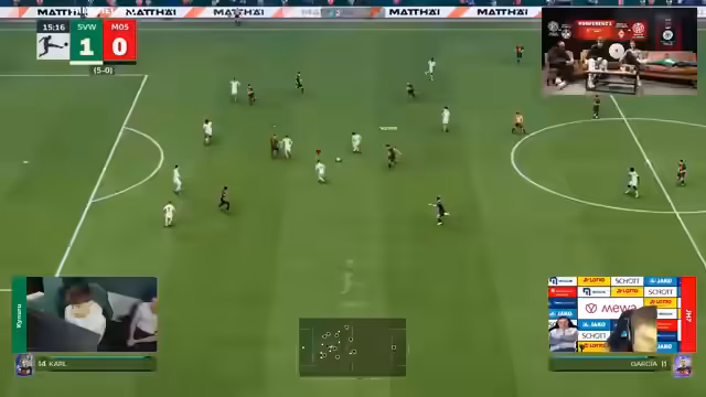 00:40:24Die Moderatoren beginnen mit der Live-Analyse der ersten Spiele. Das Spiel zwischen Fabio und Laurin vom 1. FC Kaiserslautern ist ausgeglichen, während das Spiel zwischen Dittmir und Diviners bereits eine klare Führung für Diviners aufweist. Dittmir zeigt starke Verunsicherung und im anderen Spiel Mainz gegen Bremen eröffnet Diviners nach einem 1:1-Halbzeitstand das Spiel und feiert einen klaren Sieg, was die Saison von Mainz stark in Frage stellt.