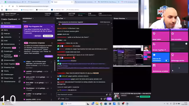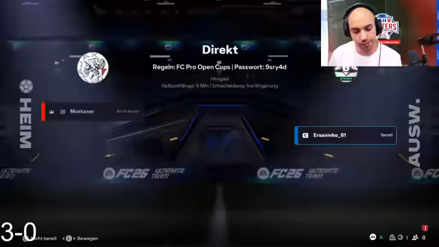 01:54:25Nachdem er seinen Gegner VfB Dennis aufgrund eines hohen Siegesvorsprungs aus der Kommentator-Lobby entfernen musste, muss der Streamer nun selbst in sein nächstes Spiel gegen diesen Gegner wechseln. Der Raum, in dem er sich befindet, wird als Laptop-Camp beschrieben. Er äußert Stress und Dringlichkeit, da er neben dem Stream auch andere Aufgaben wie Kommentierungen und Bühnenauftritte beim Event wahrnehmen muss, was die gesamte Situation sehr hektisch macht.