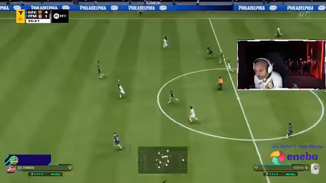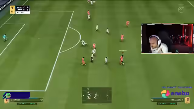 01:14:17Ein laufendes Spiel gegen einen starken Gegner endet mit einem hohen Sieg (9:4). Nach einer anfänglichen Führung von 4:0 für den Gegner, dreht der Streamer das Spiel komplett. Die Taktik des Gegners wird als nervig und 'Snipey' bezeichnet. Der Streamer führt seinen Sieg auf den Einsatz des Spielers Frimpong mit speziellen Fähigkeiten und die Nutzung des 'L1-Dreieck-Trade' zurück, was seine Angriffe massiv verbessert.