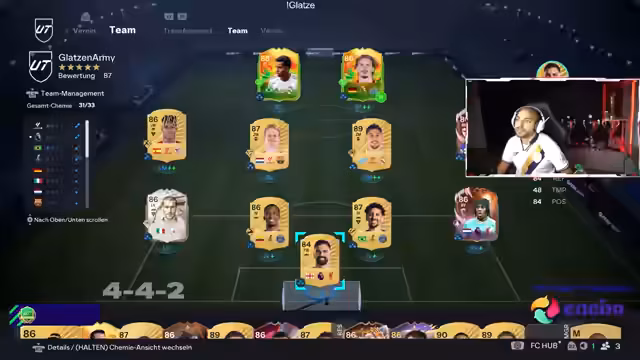 01:49:42Der Streamer öffnet verschiedene Packs für seinen anstehenden Cup-Einsatz. Er zieht einige wenige, aber teure Karten wie einen 92er ZM Bellingen und erwägt, sofort wieder zu verkaufen. Sein Ziel ist es, ein starkes Team aus Speicherplatz und neu gezogenen Karten zu bauen, da seine bisherige Squad nicht ausreicht. Er testet verschiedene Spieler, um seine Wahl für den Cup zu finalisieren.