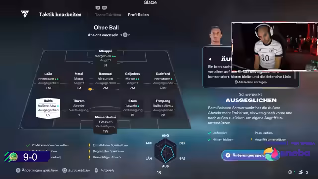 01:48:34Für die kommenden Spiele am Samstag dürfen nur vier Spieler mit einem Rating über 87 eingesetzt werden, darunter Thuram, Messi und Mbappé. Es wird dringend ein Linksverteidiger benötigt, da die aktuellen Optionen nicht optimal sind und die LVs in diesem Jahr allgemein als schwach empfunden werden. Rashford wird als zukünftiger bester RM im Spiel prognostiziert, der durch Evolutionen irgendwann 5-5 Sterne, Flachschuss, Finesse-Schuss, Raserei Gold und Pink Pass haben wird. Die Bedeutung von Player-Model und Laufstil für die Spielbarkeit einer Karte wird hervorgehoben, wobei Kundé trotz geringerer Werte als bester Verteidiger gilt. Die eigene Taktik, über Rashford zu spielen und den Pink Pass zu nutzen, wird als effektiv beschrieben, um einfache Tore zu erzielen.