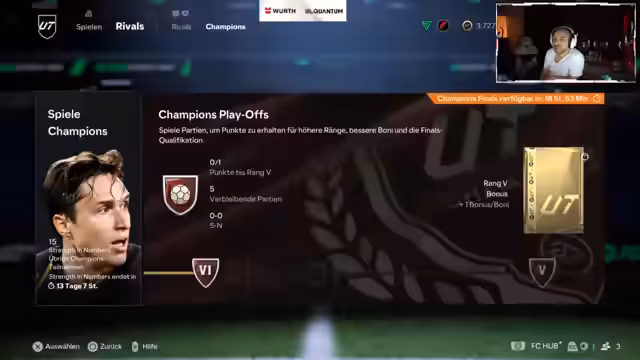 00:12:01Der Streamer beschreibt seine Erfahrungen in Rivals-Spielen, insbesondere gegen deutsche Spieler, die um ihr Leben spielen. Er erklärt, wie das Spiel durch den Patch schwieriger geworden ist, besonders bei der Abwehr gegen schnelle Spieler. Es wird über die Wichtigkeit bestimmter Playstyles wie Raserei und entscheidender Pass bei Stürmern wie Haaland und Totti diskutiert. Gleichzeitig werden neue Strategien erprobt, um den Ball zu halten und erfolgreiche Angriffe zu starten. Der Streamer betont, dass das Spiel jetzt mehr Fokus und Können erfordert.