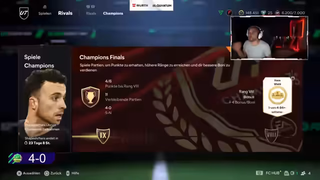 00:18:45Ein Fokus liegt auf der Rivals-Punkte-Verwaltung und dem Fortschritt in der Weekend League. Der Streamer beschreibt seine Strategie, um voranzukommen, und ärgert sich über unfaire Gegner oder Quitter. Er erwähnt, dass er mit mehreren Accounts spielt, was ihm ermöglicht, mehr Weekend League-Partien zu absolvieren. Trotz technischer Herausforderungen und Steuerungsproblemen zeigt er Entschlossenheit, seine Ziele zu erreichen, und äußert seinen Ehrgeiz als FIFA-Spieler.