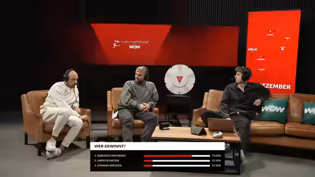 00:18:45Als Partner wird WOW genannt, der Live-Sport wie Bundesliga-Spiele anbietet und Geschenkkarten als Preis für ein Tippspiel vergibt. Vorgestellt werden die Partien Borussia Dortmund vs. SG Dynamo Dresden und Fortuna Düsseldorf vs. FC Bayern München. Die Entscheidung für die Konferenz erfolgt über Instagram. Dortmund (9 Punkte aus 3 Spielen) gilt als klarer Favorit gegen Dresden (0 Punkte aus 3 Spielen), während Bayern und Fortuna (je 9 Punkte aus 3 Spielen) als ausgeglichen gelten. Der Chat kann über Eins (Fortuna) oder Zwei (Unentschieden) für die Bayern-Partie abstimmen, um eine WOW-Geschenkkarte zu gewinnen.