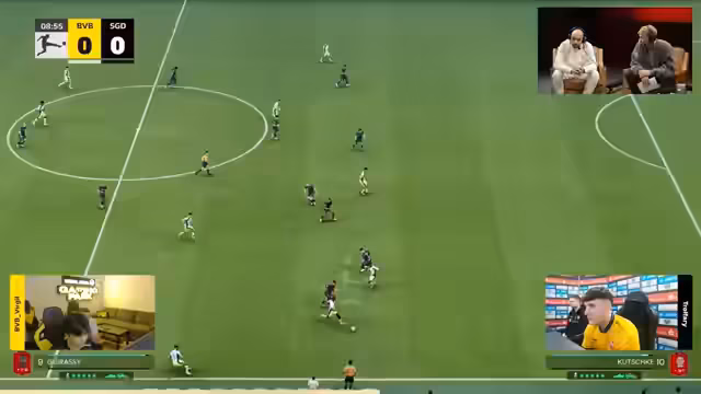 00:45:30Das Spiel zwischen Borussia Dortmund (Virgil) und SG Dynamo Dresden (Trollfury) beginnt, und Virgil erzielt früh das 1:0 durch Seogirassi. Dresden als Aufsteiger zeigt Schwächen, da der anfängliche Hype nach den ersten Spielen verflogen ist. Der Chat bemerkt, dass Dresden nach frühen Erfolgen nun realistischere Leistungen zeigt und von Gegnern nicht mehr unterschätzt wird. Virgil dominiert mit Ballbesitz und defensiver Stabilität, während Dresden nur selten gefährlich wird. Am Ende siegt Dortmund verdient mit 2:0, wobei der zweite Treffer kurz vor der Halbzeit fällt.