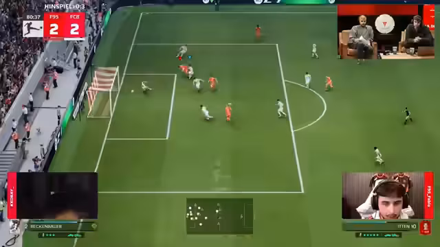 01:27:20Koray erzielt spät das 3:2 für Fortuna gegen Fabio, doch der Treffer kommt zu spät für einen Ausgleich. Zuvor hatte Fabio mit 2:1 geführt, bis Koray in der 80. Minute durch ein starkes Merkidi-Cancel-Skill (eine seitliche Drehung mit Ballrolle) auf 2:2 ausglich. Das Spiel endet 3:2 für Fabio, aber Korays spätes Tor sorgt für Diskussionen. Regeldebatten entstehen um einen Einwurf in letzter Sekunde, der als strategisches Zögern gewertet wird. Verdient wird Fabios Sieg genannt, da Koray zuvor Chancen ungenutzt ließ.