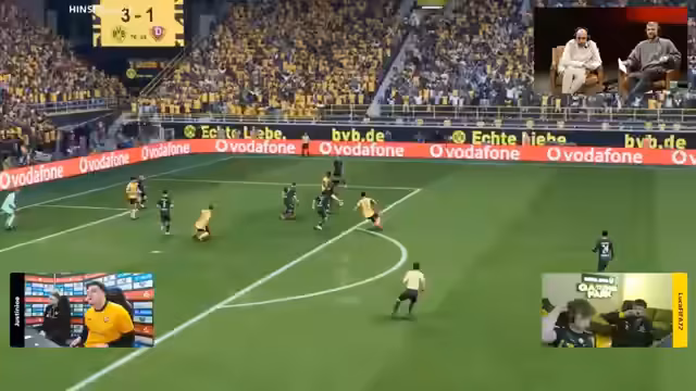 01:15:56Das Spiel Borussia Dortmund gegen Dynamo Dresden entwickelt sich spannend: Nach einem frühen Ausgleich durch Justinho (1:1) zieht Luca Fifa mit einem Finesse-Schuss für Dortmund auf 2:1. Dortmunds defensive Stärke mit Beckenbauer wird gelobt, während Dresden Probleme im Aufbau hat. Im Gesamtrating führt Dortmund 5:2. Parallelen zum Hinspiel werden gezogen, in dem Virgil mit 2:1 gegen Troy Ferry gewann. Luca Fifa nutzt kreative Runs und schnelle Kombinationen, um Druck aufzubauen.