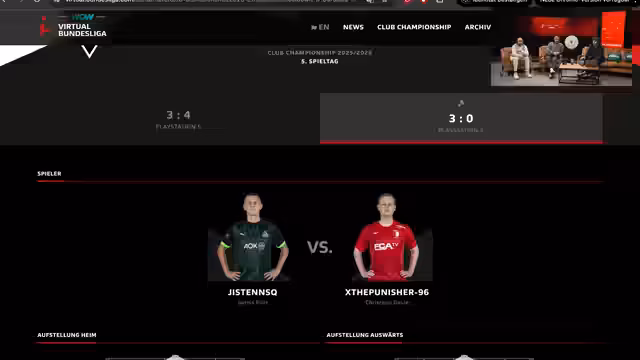 00:12:16Der Streamer stellt die aktuelle Tabelle der VBL Club Challenge vor und erklärt, dass vier von sechs Runden gespielt wurden. Teams wie Fortuna Düsseldorf, FC Bayern München, Hannover 96 und Borussia Mönchengladbach sind bislang ohne Niederlage. Fortuna belegt mit drei Spielen und neun Punkten Platz vier und benötigt nur noch einen Sieg für die Qualifikation der Top 16 für das Freitag-Finale. Dort können wichtige Punkte für die Gesamttabelle gesammelt werden, die auch für die Qualifikation zum VW Grand Final entscheidend sind. Köln wird als Team mit vier Spielen und Druck erwähnt, das aus den verbleibenden Spielen Punkte holen muss, während Freiburg mit drei Spielen nur einem Siebentyperwart als Überraschung gilt.