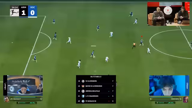 02:31:02Nach dem Gespräch mit Tim diskutieren die Streamer die Zukunft des VBL-Showdowns. Ein aktueller Content-Vorschlag wird besprochen: Ein Showdown, bei dem beide statt nur zu kommentieren aktiv für VfL Wolfsburg eSports spielen würden. Dabei hätte jeder einen eigenen Monitor, um ein gemeinsames Spiel zu zocken. Der Chat zeigt positive Resonanz auf diese Idee. Es wird klar, dass dies eine neue Formateinheit für zukünftige Events sein könnte. Parallel wird die aktuelle Tabellenlage analysiert, wobei Hertha nach einem Sieg wieder auf 9 Punkte fällt, Kaiserslautern auf 7. Ein Offline-Finale wird als Ziel genannt.