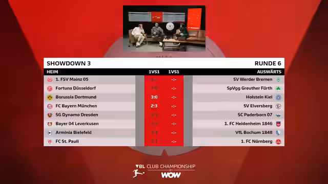 03:12:00In der Frühphase des Streams werden aktuelle Spiele analysiert. Besonders hervorgehoben wird das Duell zwischen Hertha BSC und RB Leipzig, das im Hinspiel 5:5 endete. Hertha benötigt nun zwingend einen Sieg im Rückspiel, um die Qualifikation für die Top 16 zu erreichen. Parallel dazu wird das Leverkusen-Spiel gegen Düsseldorf diskutiert, bei dem Leverkusen zwar gewinnt, aber dennoch nicht für den Offline-Showdown qualifiziert ist. Die Tabellenführung von Bayern München mit 18 Punkten wird betont, während Teams wie Werder Bremen und Hamburg um die letzten Qualifikationsplätze kämpfen.
