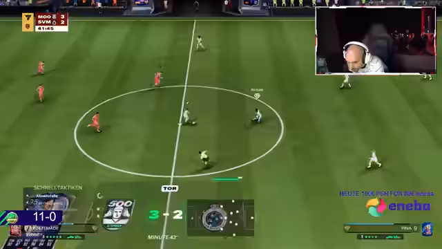 03:03:39Seit über 15 Minuten wird ohne erzielter Tore gespielt, was zu großer Frustration führt. Der Gegner gilt als einer der schwächsten des gesamten Wochenendes, und es wird ein Chemieproblem vermutet. Das aggressive Pressing der gegnerischen Mannschaft wird als übermächtig und unfair beschrieben, da die gegnerischen Spieler den Ball kaum verlieren.
