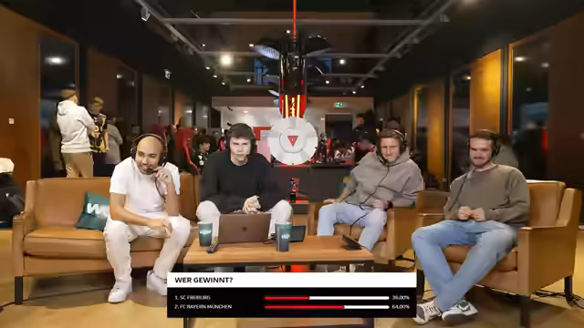 01:54:56Mo Auber zeigt seine Begeisterung für das Spiel SC Freiburg gegen Borussia Mönchengladbach, das er als persönliches Topspiel bezeichnet. Er lobt die Offensivfußball-Qualitäten aller vier beteiligten Spieler, die zu den Top 12 Europas gehören und an internationalen Events teilgenommen haben. Es wird ein Tippspiel für das Match Gianluca gegen Lukas gemacht, wobei die Kommentatoren mehrheitlich auf Freiburg setzen. Die Konstanz von Giston wird als mögliche Schwachstelle genannt. Mo Auber kündigt das zweite Achtelfinale zwischen FC Bayern München und FC Schalke 04 an, wo Fuki auf Ali und Koray auf Okan treffen. Die Fans von Fuki werden im Chat erwartet. Es wird die Bedeutung von Streamern und Communitys in der VBL hervorgehoben. Ein Tippspiel für Bayern gegen Schalke wird gestartet, bei dem eine PSN-Karte verlost wird. Die Kommentatoren diskutieren über mögliche knappe Ergebnisse und die Notwendigkeit, Risiken einzugehen.