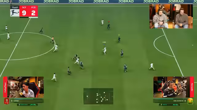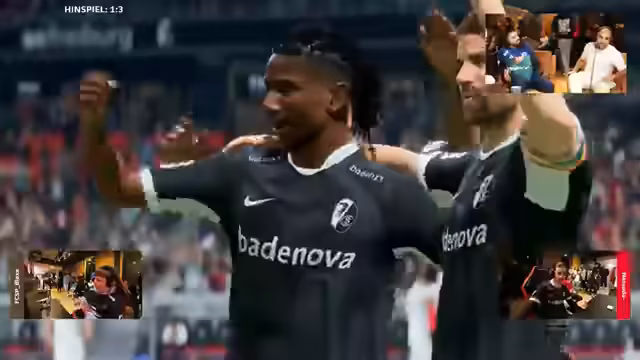 03:57:43Die Jungs vom BVB spielen in ihren gewöhnungsbedürftigen Auswärtstrikots, die als „brutal hässlich“ beschrieben werden, obwohl ein Kommentator sie nicht schlecht findet. Die Diskussion über die Trikots wird schnell beendet. Der Fokus liegt auf De Ninho, der sich den Ruf als „Time-Waster des Jahres“ erarbeitet hat, indem er den Ball geschickt hält. Es wird jedoch gewünscht, dass er auch ohne Zeitspiel gewinnt, da seine letzten Ergebnisse knapp waren. Dortmund führt im Einzelspiel mit 1:0 und insgesamt mit 2:0, was ihre Dominanz in der Gruppenphase und im Achtelfinale unterstreicht. Sie sind auf dem Weg, die Tabellenspitze zu erobern, da Leipzig bereits ausgeschieden ist. Die Kommentatoren sehen wenig Chancen für Augsburg, auch wenn De Ninho nicht so „clean“ wie Virgil ist. Ein vergebener Torschuss von Augsburg wird analysiert, bei dem der Spieler den Ball zu weit vorgelegt hat. Es wird betont, dass Yannick gelobt werden muss, da er Virgil, der sonst viele Tore schießt, gut im Griff hat. Das Spiel in Darmstadt wird als offener Schlagabtausch beschrieben, wo es nach 23 Minuten bereits fünf Tore gab und Doki zum dritten Mal in Führung liegt. Berkay meldet eine Pause an und stellt seine Taktik um, während Doki dies genau beobachtet.