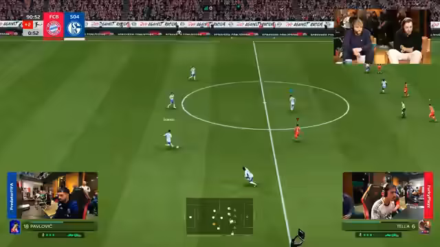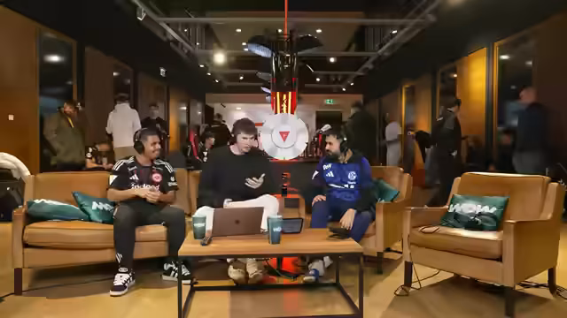 02:02:30Keanu und Bene CR7, eine VBL-Legende und DFB-Creator, werden zu den Kommentatoren geholt. Bene spricht darüber, dass er in diesem Jahr nicht mehr in der VBL mitspielt, aber seinen Spaß am Spiel zurückgefunden hat, da der Wettkampfdruck wegfällt. Er spielt weiterhin internationale Events und fühlt sich dadurch sogar besser. Er betont die Wichtigkeit, Spaß am Spiel zu haben, besonders für junge Spieler. Mo Auber führt noch ein kurzes Interview mit einem Spieler, bevor die Spiele beginnen. Die erste Begegnung ist Bayern München gegen Schalke 04. Die Schalker sind in den weißen Trikots und haben in den ersten neun Minuten mehr Offensivszenen, obwohl Fuki und die Bayern als Favoriten gelten. Fuki verteidigt gut und hat die erste gute Chance über Teller. In der Pause wird zum Gameplay von Ladi und Mo geschaltet, die das Spiel als sehr wichtig für beide Teams einschätzen.