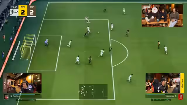 02:18:53Harry Kane, der auch im ZM spielt, ist vielseitig einsetzbar. Trotz der kurzen Halbzeiten von sechs Minuten gibt es wenige Unterbrechungen. Furky erzielt das 3:1 nach einem wunderbaren Doppelpass mit Harry Kane und einem präzisen Finesse-Schuss. In der anderen Partie fällt der Ausgleich zum 3:3, erzielt von Gianluca mit Angelo Stiller. Das Spiel ist sehr spannend und hin- und hergerissen. Es wird über das Tippspiel gesprochen, und die Spieler, die unter sechs oder neun Toren getippt haben, sind raus. In der Schlussphase versucht Ali, den Druck aufrechtzuerhalten und den Rückstand zu verkürzen. Er erzielt den Anschlusstreffer zum 3:2 durch eine klassische Player-Lock-Ecke, was die Partie wieder spannend macht. Furky versucht, ruhig aufzubauen, aber Ali kämpft sich wieder nach vorne. Ein weiterer wichtiger Treffer von Michael Olise in der 90. Minute erhöht die Führung von Furky auf 4:2, was für Ali sehr bitter ist. Trotzdem bekommt Ali noch einen letzten Angriff, der aber nicht zum Tor führt, und die Bayern gewinnen mit 4:2. In der anderen Partie gewinnt Lukas sehr spät mit 4:3. Es werden die Ergebnisse weiterer Parallelspiele bekannt gegeben: St. Pauli gewinnt 4:0 gegen Hertha BSC, und Preußen Münster gewinnt 4:3 gegen Darmstadt 98.