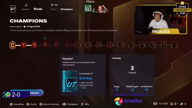 04:21:05Der Spieler stellt fest, dass er immer noch keinen Streamer gesehen hat, der eine 15:0 Weekend League erreicht hat, und dass er selbst noch nicht so weit ist. Er beschreibt einen Bug im Spiel, bei dem das Bewegen des Torwarts während des Anlaufs des Gegners dazu führt, dass der Schuss nicht platziert wird und in die Mitte geht, obwohl Precision Shooting aktiviert ist. Dies wird als 'richtig dumm' empfunden. Er erwähnt, dass Buki, ein angeblicher Weltrekordhalter, noch nie eine Weekend League verloren hat und immer 15:0 erreicht. Der Spieler kämpft mit 'Dämonen' in Form von Gegnern, die nur Playerlock und Meta-Formationen nutzen, und hat bereits zwei solcher Spiele in Folge gehabt. Er schickt die Zuschauer in die Werbung, da er befürchtet, dass das Spiel gleich 'ingame' wird. Die Frustration über das Gameplay und die unfairen Mechaniken ist spürbar, da er das Gefühl hat, dass das Spiel gegen ihn arbeitet.
