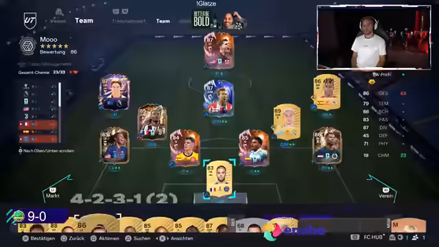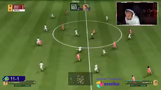 04:07:50Es wird ein spannendes Spiel zwischen Bene und seinem Gegner beobachtet, wobei Bene, ein TikToker, 12:0 führt, aber 6:5 hinten liegt. Der Gegner wird als 'krankes Team' mit Spielern wie Sergio Busquets, Ginolab und Mbappé beschrieben, der sogar gemutet und die Kamera ausgeschaltet hat, was auf einen 'Grinder' oder E-Sportler hindeutet. Der Spieler äußert seine Frustration über die 4-5-1 Formation, die er als 'nervig' empfindet, obwohl er immer gewinnt. Er beklagt, dass die drei zentralen Mittelfeldspieler ihn 'abpacken' und ihm den Spaß am Spiel nehmen. Die Diskussion über die 15:0 Weekend League-Bilanz und die Schwierigkeit, diese zu erreichen, zeigt den hohen Anspruch. Er erwähnt, dass er noch keinen Streamer gesehen hat, der 15:0 erreicht hat, und dass er selbst mit zwei aufeinanderfolgenden Spielen gegen Meta-Formationen und Playerlock-Spieler zu kämpfen hat, was er als 'Dämonen' bezeichnet. Die Frustration über das Gegnerverhalten, das oft auf 'Nerven' abzielt, wird deutlich.