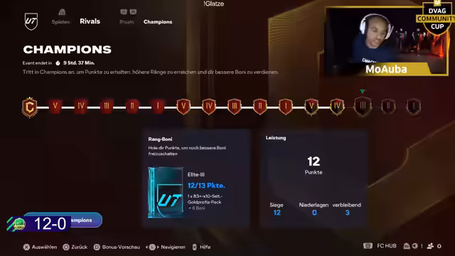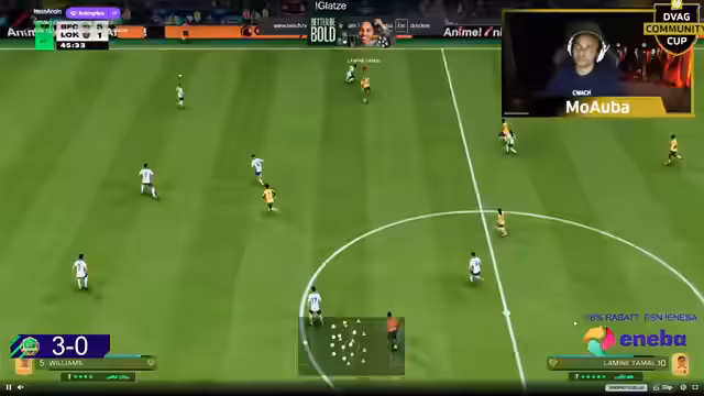 02:46:41Nach der Turnierübersicht wechselt der Streamer zu seiner persönlichen Gaming-Session in der Weekend League, wo er aktuell 3:0 steht und noch zwölf Spiele vor sich hat. Er beginnt im Hintergrund den Football Manager herunterzuladen, ist sich aber unsicher, ob er das Spiel streamen darf, da es sich um eine frühe Version handelt. Er überprüft, ob andere Streamer das Spiel bereits zeigen, um mögliche Richtlinien zu klären. Während des Downloads bemerkt er einen hohen Ping von 190, was auf eine starke Auslastung seiner Internetverbindung hindeutet. Er scherzt über seine 'Bambus-Con' und die Auswirkungen auf sein Gameplay, hofft aber, dass seine Gegner schwach genug sind, um trotzdem zu gewinnen. Die technische Herausforderung wird zu einem wiederkehrenden Thema, da der hohe Ping seine Leistung beeinträchtigt und ihn dazu zwingt, seine Strategie anzupassen, um trotz der Verzögerungen erfolgreich zu sein.