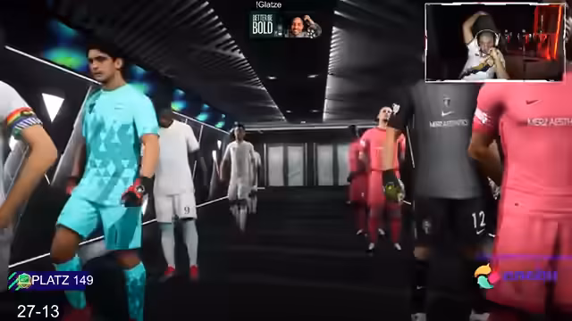 00:16:58Nach einem Foul erhält der Streamer eine unglückliche rote Karte, was ihn für den Rest des Spiels schwächt. Dies führt zu einer defensiven Lähmung und der Überzeugung, das Spiel nicht mehr gewinnen zu können. Trotzdem kämpft er weiter, verliert jedoch mit 1:2. Er quittiert das Match frustriert, fühlt sich durch den hohen Ping und das unfaire Verhalten des Spiels um einen sicheren Sieg betrogen, was seine Punktzahl negativ beeinflusst.
