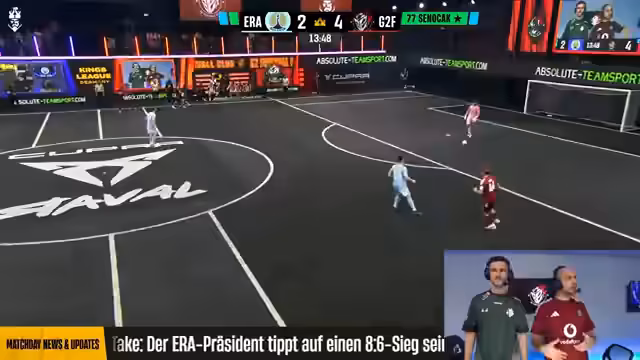 01:08:55Das Spiel beginnt mit hohem Tempo und klaren Torchancen für G2. Das Team zeigt eine starke Offensivleistung und erarbeitet sich eine 4:2-Führung. Die Zuschauer erleben Actionszenen wie Handspiel-Diskussionen und torgefährliche Angriffe, wobei der Fokus auf schnellem Ballgewinn und präzanten Abschlüssen liegt. Der Kommentator äußert sich beeindruckt von der Spielweise und der konsequenten Torerzielung, die G2 in der ersten Halbzeit dominieren lässt. Ein Elfmeter zur Mitte der ersten Halbzeit sorgt für zusätzlichen Spannungsmoment.