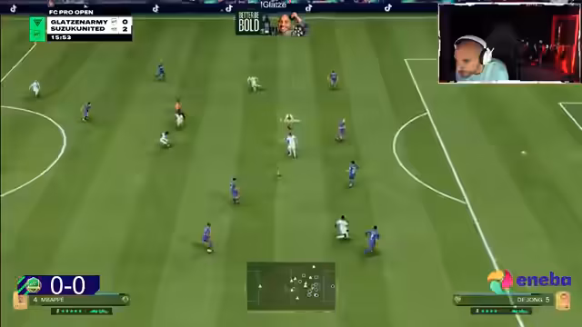 00:08:59Während des Spiels gegen den Gegner Furky werden massive technische Probleme deutlich. Der Streamer klagt über instabile Verbindung, Serverprobleme und die Unmöglichkeit, Spieler auszuwählen, was das Spiel unmöglich macht. Er vergleicht die Performance im Turniermodus negativ mit dem flüssigeren Spiel in der Rivals-Serie. Taktisch stellt er fest, dass das Fehlen von ZDMs in seinem 4-4-2-System die Verteidigung erschwert und man automatische Handlungen verliert.