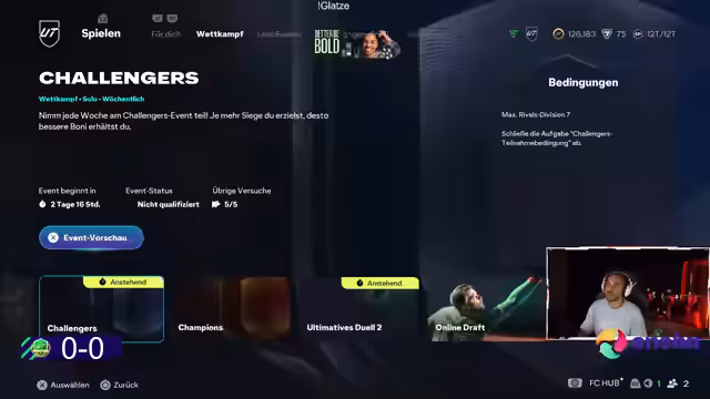 13:09:19Im Stream wurde der DVG Cup vorgestellt, ein exklusives FIFA-Turnier für Amateurspieler, bei dem Profis und ehemalige E-Sports-Spieler mit Verträgen nicht teilnehmen dürfen. Das Turnier folgt einem Swiss-Format und erstreckt sich über mehrere Wochen mit Montagsspielen, wobei die Plätze auf 1.000 Teilnehmer begrenzt sind. Der Streamer ermutigte seine Zuschauer aktiv zur Anmeldung, da noch freie Plätze vorhanden seien, und bot an, das Event zu begleiten, Spiele zu streamen und die Community zu coachen. Diese Initiative zielt darauf ab, eine faire und unterhaltsame Plattform für Hobbyspieler zu schaffen und den gemeinsamen Wettkampf zu fördern.