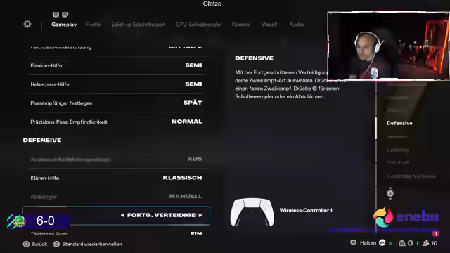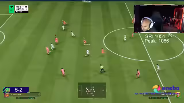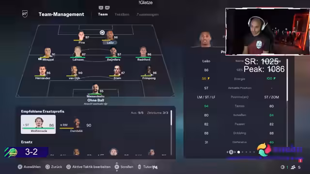 01:05:42Nach einer 6er-Winstreak folgt eine 4er-Losingstreak, sodass der Record bei 10-10 steht. Der Streamer erwägt Formationen wie 4-4-2, verwirft sie aber zugunsten von 4-2-3-1, da sie besser zu seinem Stil mit Druckpass und Player Locks passt. Er plant einen Wechsel zu Patrick Vieira und Frankie de Jong als Doppel-Sechs, braucht dafür aber mehr Coins.